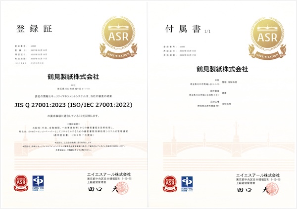 当社は、機密書類溶解処理システムを構築するにあたり、より高度な情報セキュリティマネジメントシステムの構築を目的として、2007年5月から、情報セキュリティマネジメントシステムISO27001(ISMS)の認証を取得しております。