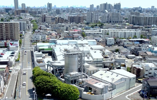 溶解設備のある鶴見製紙本社は、最寄駅の南鳩ケ谷から徒歩約10分。都心から電車、及び車で約40分の距離です。