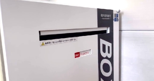 回収BOXは個人情報を含む書類の溶解用として利用しています。