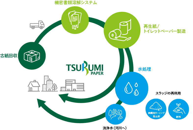 製紙業界を牽引するした環境対策投資を実施。 工場内各工程の効率化、副産物のリサイクル促進、 排水浄化の徹底などを進めております。
