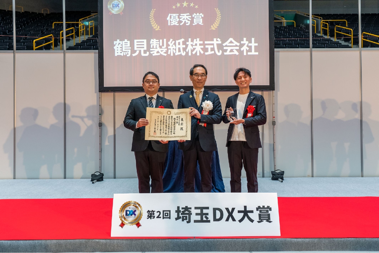 1月22日に埼玉スーパーアリーナで開催された「埼玉DX大賞」の授賞式で、私たち鶴見製紙の取り組みが評価され、優秀賞をいただくことができました。